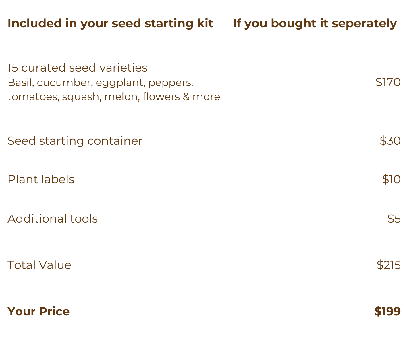 The seed kit alone is worth more than the price of the course. And that’s before you factor in the step-by-step lessons, live coaching, lifetime community access, and everything else that comes with enrollment.